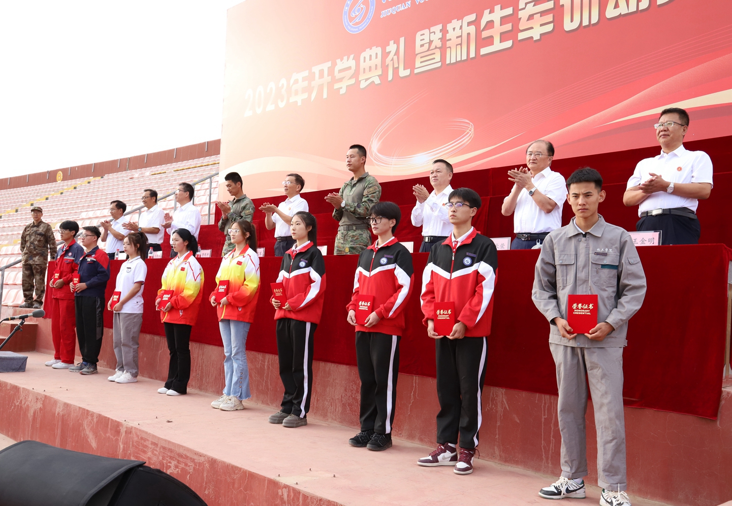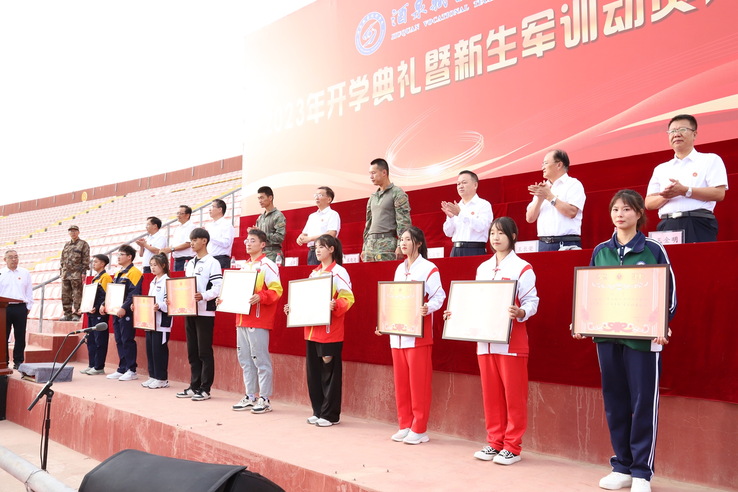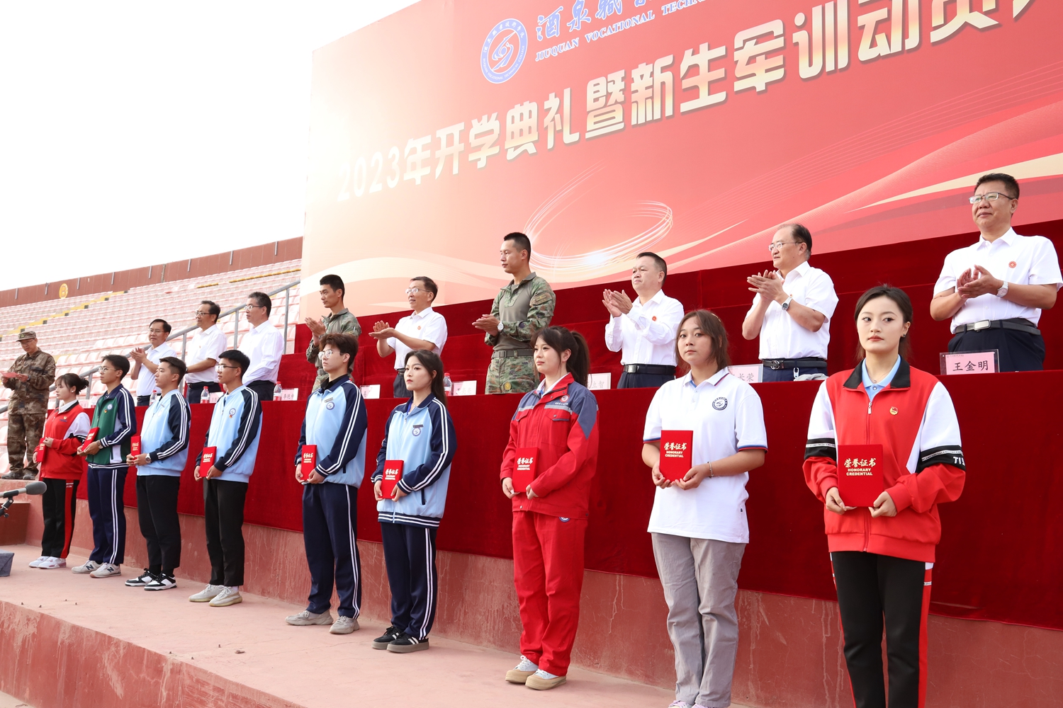 大会宣读了2023年全国职业院校技能大赛获奖学生名单、《关于表彰酒泉职业技术学院2022-2023学年度先进班集体、三好学生、优秀学生干部的决定》,并为获奖学生、先进集体颁奖。教师代表张玉秀老师发言,2023级全体新生进行了入校宣誓。