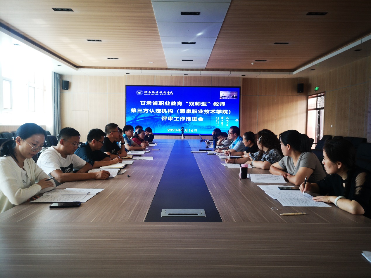 为贯彻落实《关于开展甘肃省职业教育“双师型”教师第三方认定机构评审工作的通知》精神,加快推进甘肃省职业教育“双师型”教师第三方(酒泉职业技术学院)认定机构评审工作,9月16日下午,学校组织召开了甘肃省职业教育“双师型”教师第三方(酒泉职业技术学院)认定机构评审工作推进会。会议由学校教师发展中心主任、教务处副处长陈学红主持。