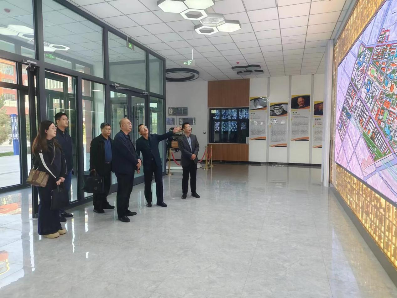 崔发昌一行在党委书记、校长易志军、副校长王金明的陪同下深入格物楼(百度标注基地)、新能源技术国际共享服务中心和智能制造中心、敦煌彩塑技艺传习所,了解了学校办学硬件条件和科研内涵建设情况。