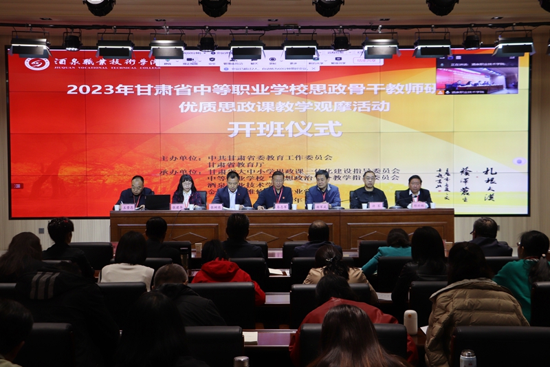 要闻快递 > 正文10月9日上午,由中共甘肃省委教育工作委员会、甘肃省教育厅主办,甘肃省大中小学思政课一体化建设指导委员会中等职业学校“思想政治”分教学指导委员会、酒泉职业技术学院和金塔汽车维修中等专业学校承办的2023 年甘肃省中等职业学校思政骨干教师研修班暨优质思政课教学观摩活动在酒泉职业技术学院举行开班仪式。