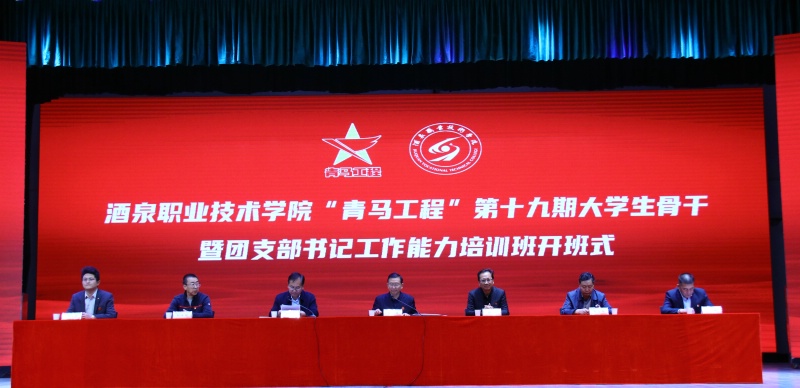 要闻快递 > 正文2023年11月7日,酒泉职业技术学院“青马工程”第十九期大学生骨干培训暨团支部书记工作能力提升培训班开班。学校党委书记、校长易志军,党委委员、纪委书记、监察专员魏韡,党委委员、副校长施荣,党委委员、组织人事处处长茹立军,学工部、马克思主义学院、团委等部门负责人,各学院党支部副书记、团委书记及300余名青马班学员参加会议。会议由党委委员、副校长施荣主持。