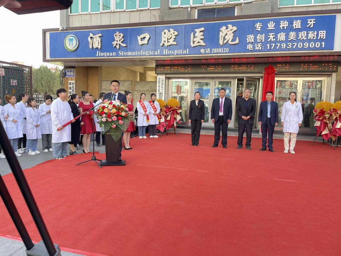 孙吉峰致辞,他对酒泉职业技术学院党委副书记许军一行的到来表示欢迎,对酒泉职业技术学院积极支持建设口腔医学技术教学实践基地表示感谢,并表示酒泉职业技术学院口腔医学技术专业教学实践基地落户酒泉口腔医院,建立口腔医学技术教学实践基地是校企合作实现双赢、共谋发展的重要举措。