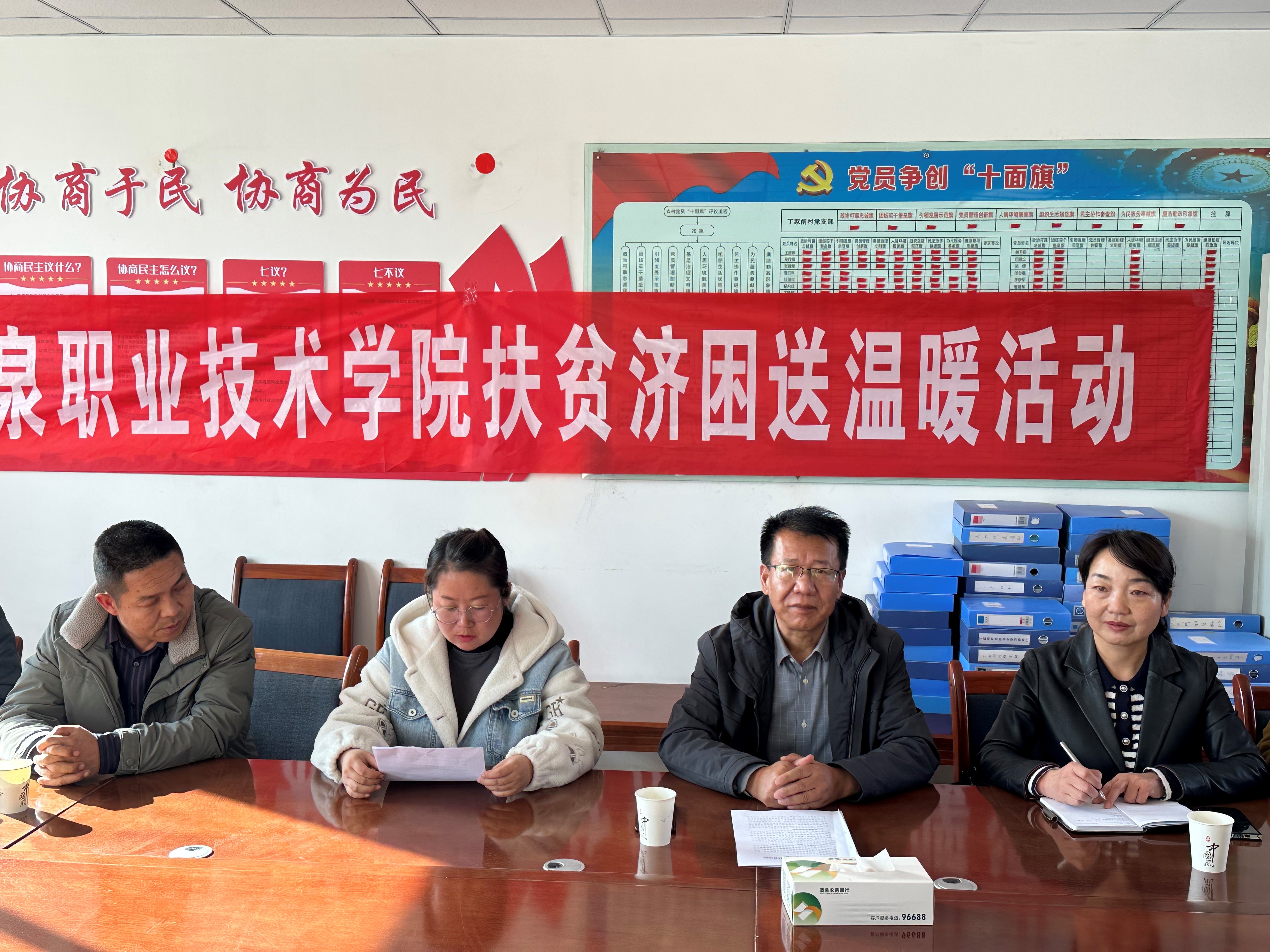 2024年11月22日,酒泉职业技术学院党委委员、副校长王金明一行赴乡村振兴帮扶点--果园镇丁家闸村、小坝沟村对因病致贫越冬困难户进行慰问。