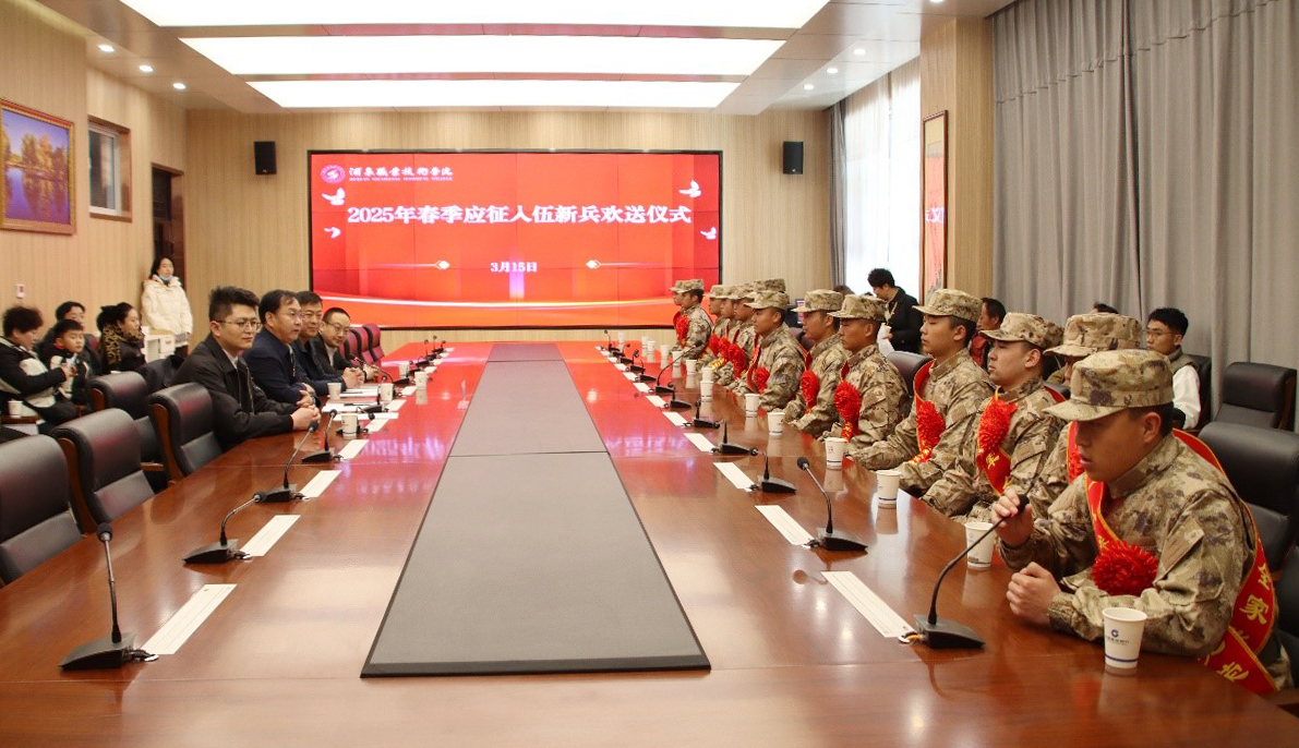 2025年3月15日上午,学校2025年春季应征入伍新兵欢送仪在弘毅楼A106举行。学校党委委员、副校长施荣,学生工作部、团委负责人、应征入伍学生及新兵家长参加活动。