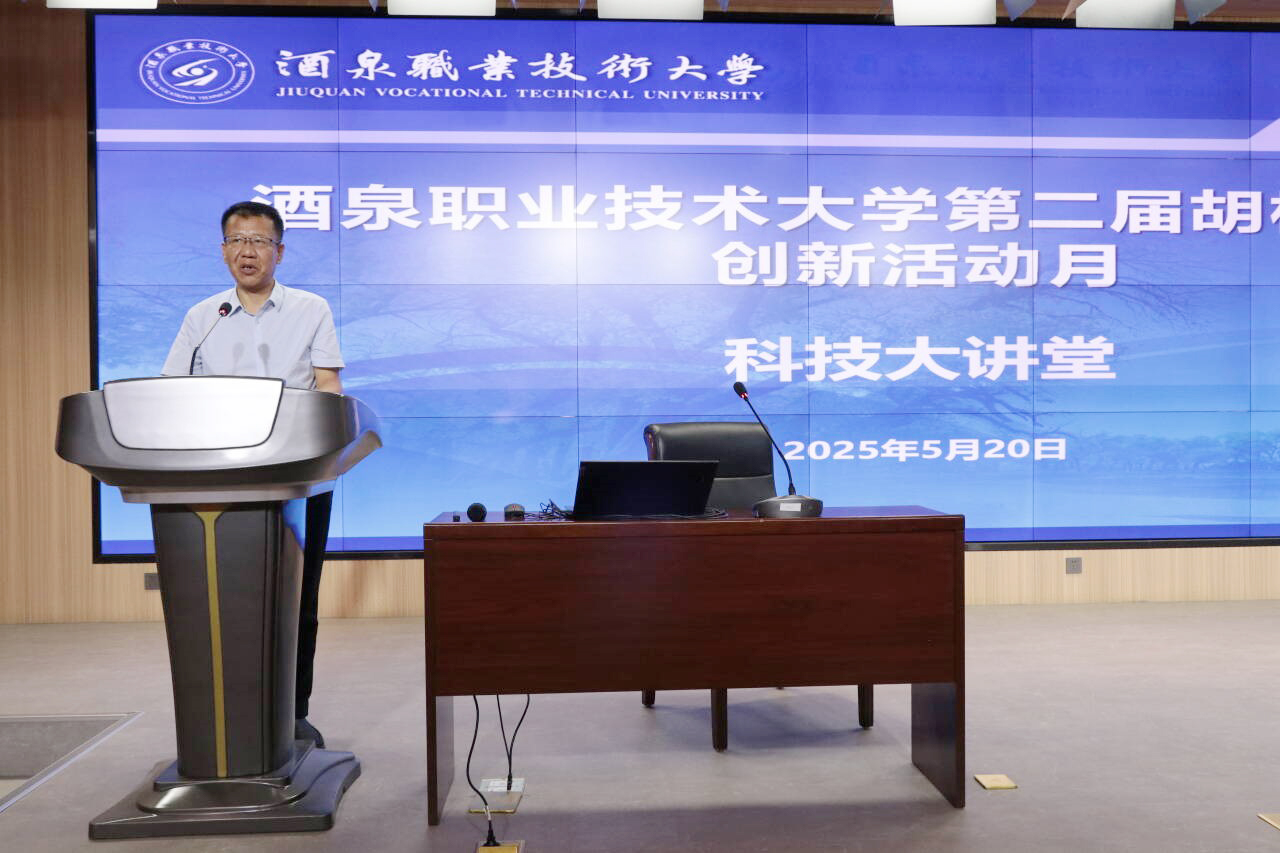 为深入推进酒泉职业技术大学第二届胡杨·科技创新活动月实施,聚焦职业本科教育发展前沿,依托校级创新中心、胡杨·科技创新团队等平台资源。2025年5月20日下午,学校举办“科技大讲堂”活动。学校党委委员、副校长王金明出席活动。校级科技创新中心、胡杨·科技创新团队等师生代表200余人参加活动。本次活动邀请兰州理工大学韩伟教授作了《探索未知和创新--浅谈科研思路和过程》专题报告。