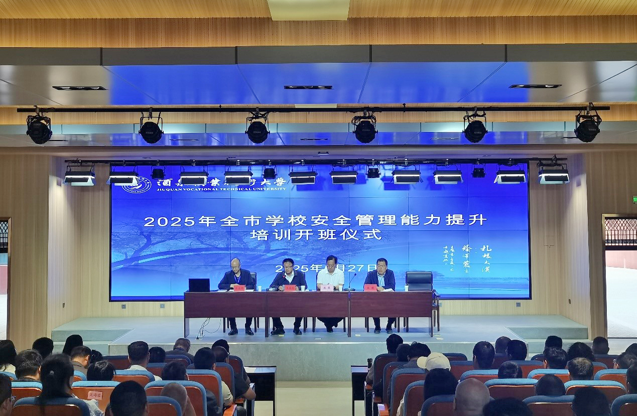 2025年5月27日上午,酒泉市学校安全管理能力提升培训班在酒泉职业技术大学开班。酒泉市教育局党组成员、副局长王凌志,学校党委委员、副校长施荣出席开班仪式。酒泉市教育局四级调研员张进学主持。各县(市、区)教育局分管负责人、安全股室负责人及各学校相关人员,共计150余名学员参加。