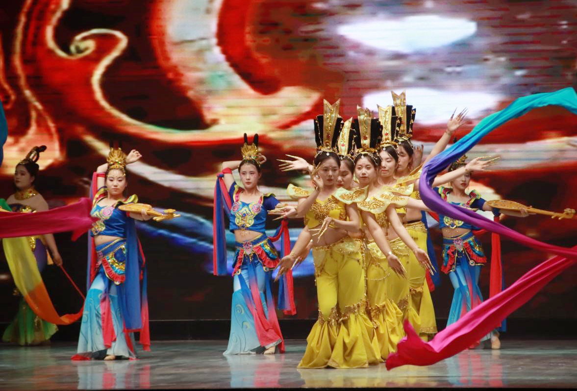 整场演出通过多元艺术形式,生动诠释了“薪火相传”的深刻内涵。酒泉职业技术大学学子带来的敦煌舞《技传千年》、古典舞《山河共舞》,将中华优秀传统文化的深厚底蕴与青春活力完美结合;酒泉老年大学带来的服装表演《岁月鎏金·桑榆未晚》、国风礼赞《江山如画》等节目,展现了老一辈昂扬向上的精神风貌和对新时代的深情礼赞。此外,经典诵读《典籍咏流传》、女声独唱《春风十万里》、书画艺术展演《翰墨流芳》等节目轮番上演,将文化传承与精神接力交织呈现,形成老少两代人跨越时空的对话,节目演出赢得现场观众阵阵掌声。