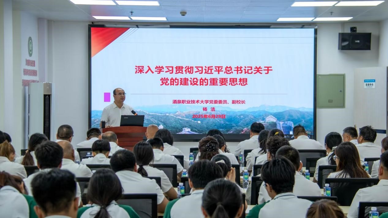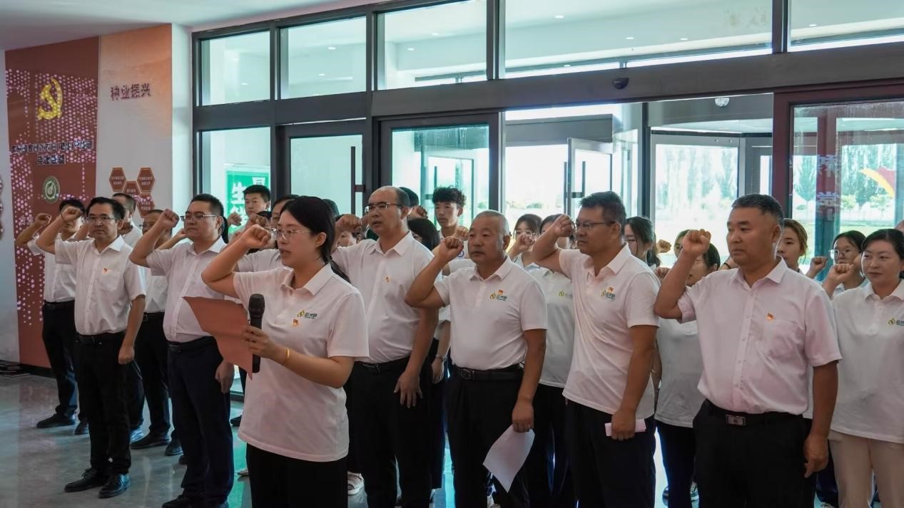 要闻快递 > 正文为庆祝中国共产党成立104周年,深化校企党组织交流合作,凝聚产教融合发展合力。2025年6月29日,酒泉职业技术大学与酒泉芯农研种业科技有限责任公司党支部联合开展“学规明纪强根基,淬炼作风建新功”迎七一党建联建活动。学校党委委员、副校长杨洁出席活动,双方党员代表、入党积极分子参加活动。