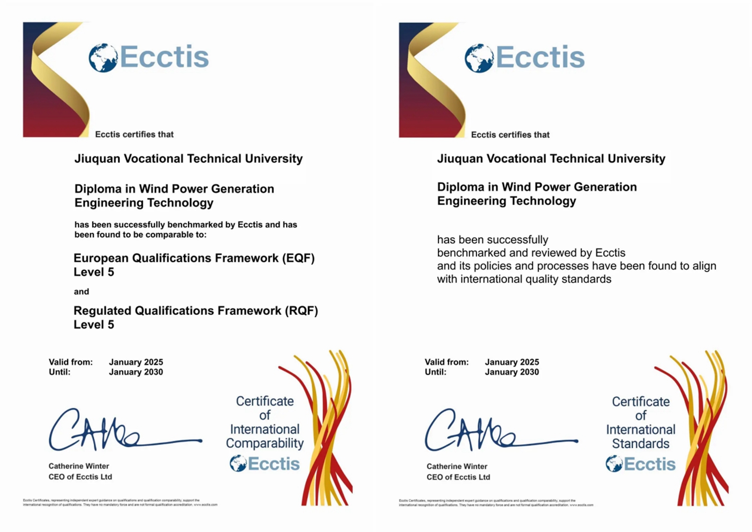 近日,英国国家学历学位评估认证中心(UK ENIC)正式授予酒泉职业技术大学风力发电工程技术专业国际质量标准证书与国际可比性证书,标志着该专业成功通过国际专业标准评估认证,成为全国首个获此认证的风力发电工程技术专业。这一突破性成果不仅彰显了学校专业建设的硬核实力,更为学校国际化办学、人才培养提质、服务国家战略注入了强劲动力。