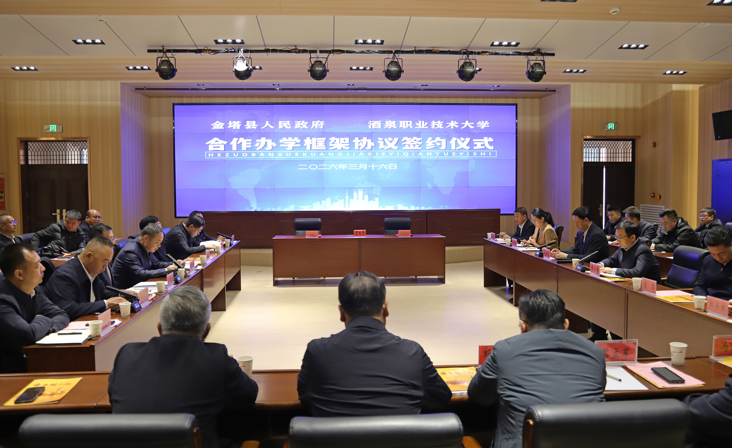 春潮涌动催奋进,产教携手启新程。2026年3月16日,金塔县人民政府与酒泉职业技术大学合作办学框架协议签约仪式在酒泉职业技术大学举行。