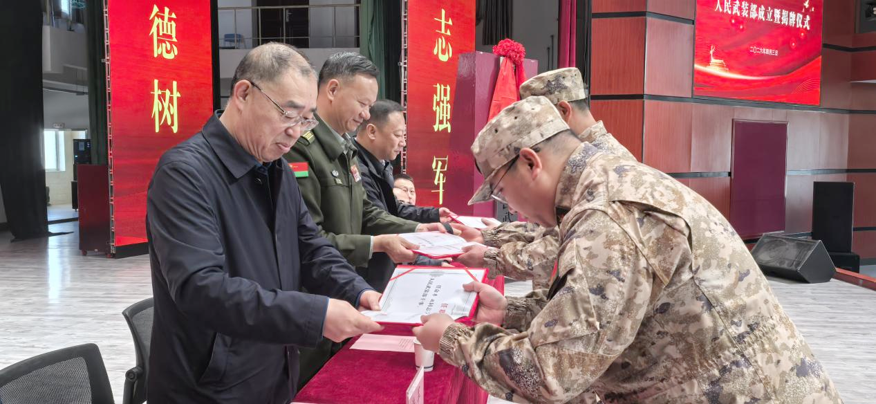 征程万里风正劲,重任千钧再出发。学校将以人民武装部成立为新起点,始终坚守为党育人、为国育才初心使命,坚决扛起党管武装政治责任,深耕国防教育沃土,持续深化军地融合发展,扎实推进国防教育、征兵工作、民兵建设等各项工作走深走实、见行见效。让国防意识融入校园文化、根植师生心中,引导广大青年学子把青春理想融入国防事业,以青春之我、奋斗之我为国防后备力量建设添砖加瓦,奋力为酒泉市经济社会高质量发展和国防现代化建设书写新时代酒泉职业技术大学答卷!(信息员:学生工作部 李波)