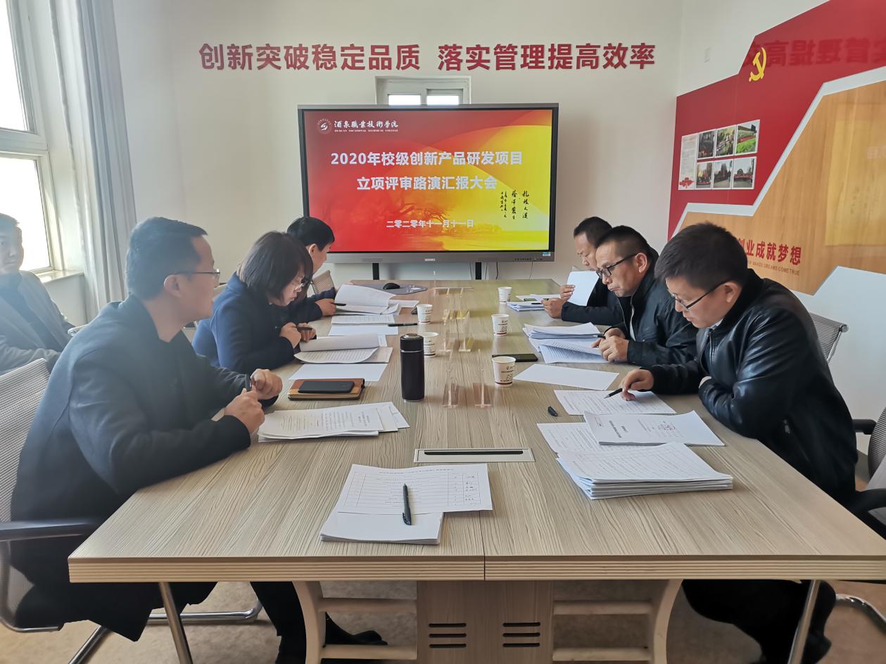 根据《酒泉职业技术学院关于开展2020年校级创新产品研发项目申报工作的通知》(酒职院字【2020】261号)的文件精神,11月11日下午3点,在大学生科技创新园三楼会议室举行了2020年校级创新产品研发项目立项评审会。