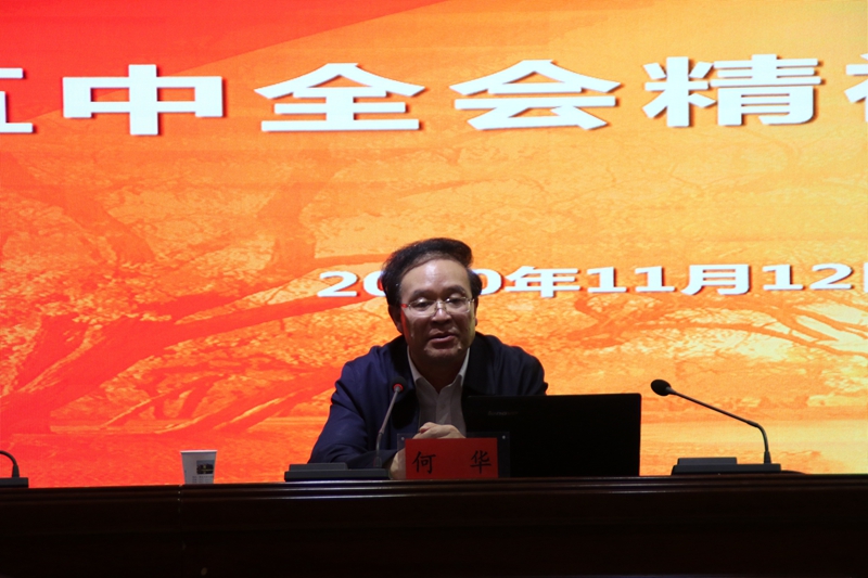 何华教授围绕十九届五中全会召开的背景、核心要义、主要成果、重要特点以及制定“十四五”规划建议处理的五大“关系”等几个方面传达了十九届五中全会精神,深刻解读了全会提出的一系列新的重要思想、重要论断、重大举措,深入剖析了到2035年基本实现社会主义现代化的远景目标和“十四五”时期经济社会发展的方针原则、主要目标、重点任务等内容。整场报告主题鲜明、内涵丰富、重点突出、思路清晰、见解独到,为我们进一步深刻理解全会精神、精心谋划十四五、奋力双高校开拓了思维,提供了借鉴,具有很强的政治性、思想性、针对性和指导性。