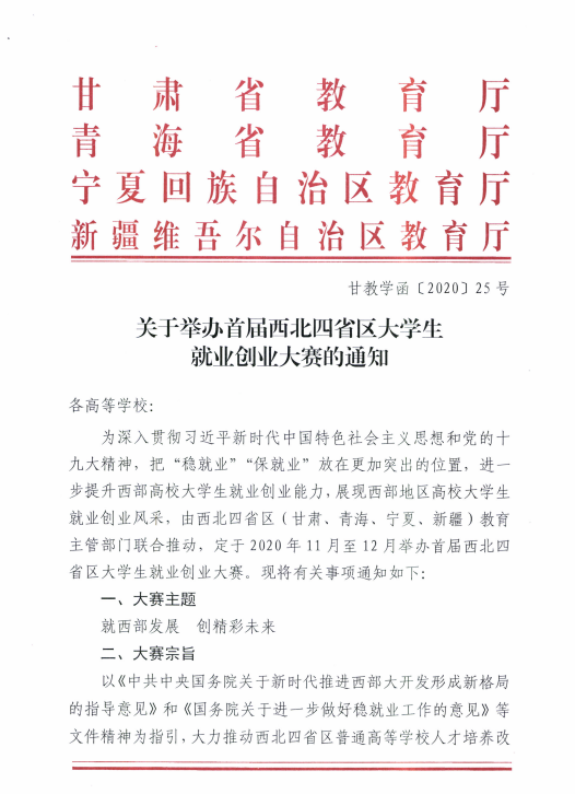 关于举办首届西北四省区大学生就业创业大赛的通知