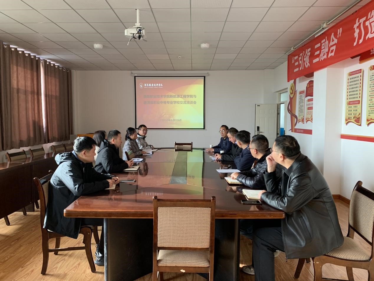 2020年10月19日上午,我院与通渭县职业中等专业学校在致远楼319会议室进行了交流活动。我院党支部书记、院长冯黎成,党支部副书记李亮,教学副院长程明杰和学院骨干教师,通渭职专学科带头人牛炳中、教务处主任牛腾参加了交流会。
