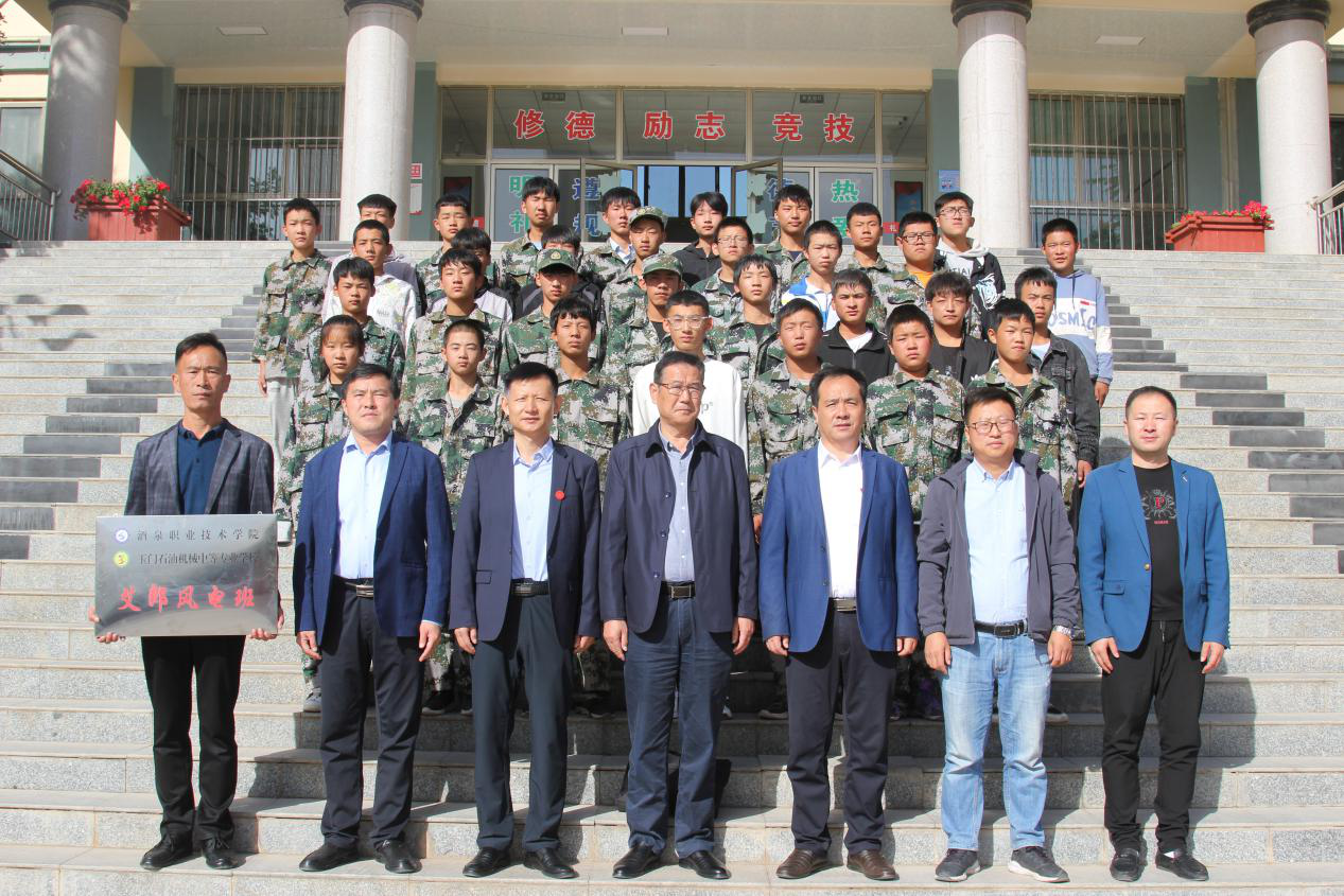2021年9月27日,我院联合艾郎科技股份有限公司玉门、玉门石油机械中等专业学校在玉门石油机械中等专业学校共同为35名学子举行2021级“艾郎风电班”开班仪式。出席开班仪式的有艾郎科技股份有限公司玉门生产基地副总经理叶文忠、人事部经理郭金双;酒泉职业技术学院新能源工程学院党支部书记、院长冯黎成,副院长张振伟;玉门石油机械中等专业学校党委书记、校长刘小平,副校长马建峰;订单班全体学员及家长。
